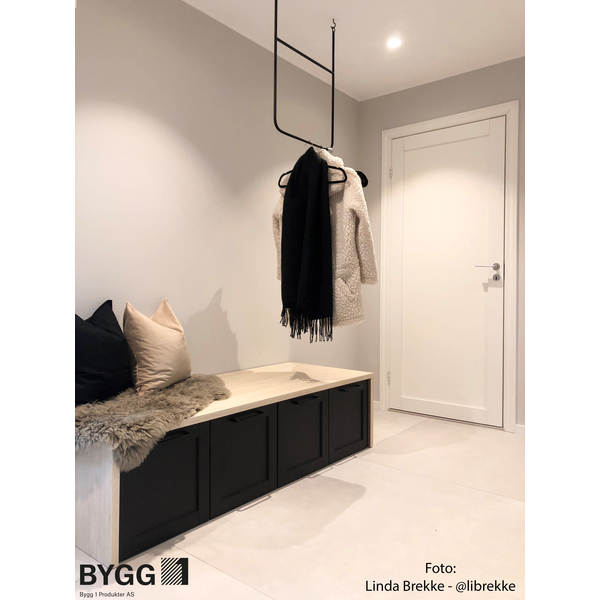Massiv innerdør i moderne og stilreint design med ett speil. Stabil dør med god tyngde og overflatebehandling. Det beste valget viss du ønsker skikkelige tredører med god kvalitet, uten at de skal koste for mye. Teknisk beskrivelse: 40mm bredde, ramtre av laminert fingerskjøtt furu (10cm), speil av 10mm trefiberplate belagt med folie, 4mm HDF på alle treflater og kanter. Blank låskasse (2014) og hvite snap-in beslag. Hvitmalt NCS S 0502-Y er standard, andre farger på bestilling. Dørene kan leveres i ulike varianter: Enfløya, tofløya, dør med sidefelt og som skyvedør. Skyvedører er plassbesparende og praktisk. Massive dører anbefales i kombinasjon med karm med dempelist. Se mer informasjon på www.bygg1.no