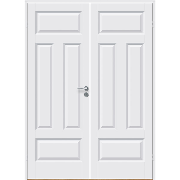 Formpresset kompakt innerdør i tradisjonelt design med fire speil, god tyngde og ekstra god overflatebehandling. Et svært godt valg samtidig som det er et rimeligere alternativ til heltredører. Teknisk beskrivelse: 40mm dørblad, ramtre av MDF, kjerne av rørspon, overflata er formpresset plate av MDF. Blank låskasse 2014 og to hvite snap-in beslag. Hvitmalt NCS S 0502-Y er standard, andre farger på bestilling. Dørene kan leveres i ulike varianter: Enfløya, tofløya, dør med sidefelt, tette, som skyvedør og med glassfelt. Med innfelt glass øker romfølelsen og lyset flyter fritt mellom rommene. Skyvedører er plassbesparende og praktisk. Kompakte dører anbefales i kombinasjon med karm med dempelist. Se mer informasjon på www.bygg1.no