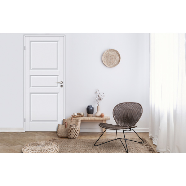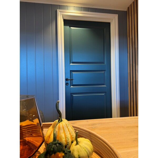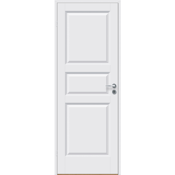 Formpresset lett innerdør i tradisjonelt design med tre speil og fin overflate. Et godt valg samtidig som det er et rimelig alternativ til kompakte dører. Teknisk beskrivelse: 40mm dørblad, ramtre av MDF, kjerne av honeycomb, overflata er formpresset plate av MDF. Blank låskasse (2014) og to hvite snap-in beslag. Hvitmalt NCS S 0502-Y er standard, andre farger på bestilling. Dørene kan leveres i ulike varianter: Enfløya, tofløya, dør med sidefelt, som skyvedør, tette og med glassfelt. Med innfelt glass øker romfølelsen og lyset flyter fritt mellom rommene. Skyvedører er plassbesparende og praktisk. Se mer informasjon på www. bygg1.no