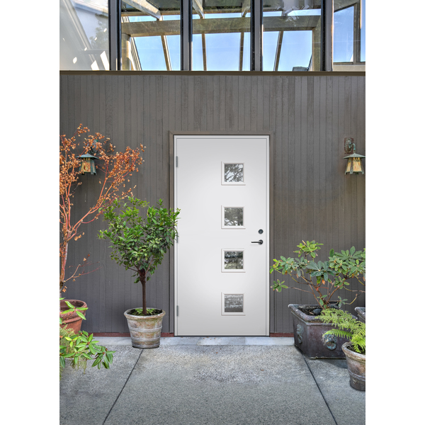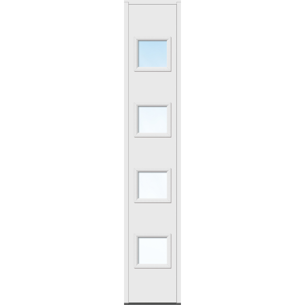 Sidefelt til ytterdør i moderne design med god kvalitet. Med hele fire strøk maling på utsatte steder, er sidefelta behandla for å tåle vårt nordiske klima. Klart 2-lags isolerglass med glasslister og sprosser i PVC. Konstruksjon: Ramtre av fingerskjøtt furu, 54 mm EPS isolasjon, overflatemateriale av 4 mm HDF. Kvistfri furukarm 44x105 mm. Standard farge NCS S 0502-Y andre farger på bestilling. Se mer informasjon på www.bygg1.no