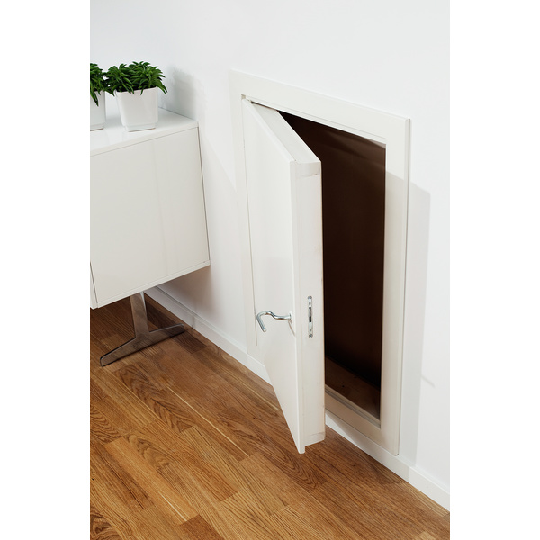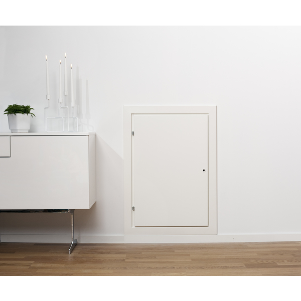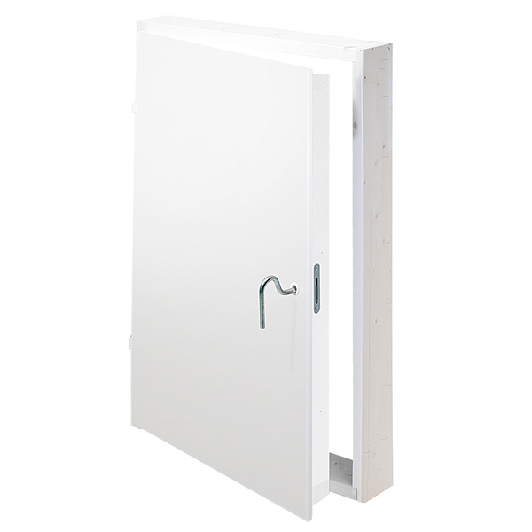 Kottdør med luke som har ramme av furu, med 3,2mm plate av MDF på begge sider. Luken har 70mm isolasjon EPS og en u-verdi på 0,54. Mellom karm og luke er det en EPDM- gummilist. Luken og karmen leveres hvit NCS S 0502-Y på utsiden og ubehandlet på innsiden. Kottdøren har hakelås med avtagbar nøkkel i rundjern, 120mm. Den har motstilte hengsler, slik at luken kan benyttes både med venstre og høyre hengsling. Alle beslag er av stål som er forzinket. Leveres ferdig montert i karm. Modul: 54 x 54/69/79/89/109/139, spesialmål på bestilling