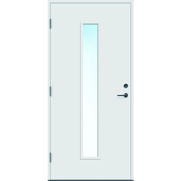 Sidefelt til ytterdør i moderne design med god kvalitet. Med hele fire strøk maling på utsatte steder, er sidefelta behandla for å tåle vårt nordiske klima. Klart 2-lags isolerglass med glasslister og sprosser i PVC. Konstruksjon: Ramtre av fingerskjøtt furu, 54 mm EPS isolasjon, overflatemateriale av 4 mm HDF. Kvistfri furukarm 44x105 mm. Standard farge NCS S 0502-Y andre farger på bestilling. Se mer informasjon på www.bygg1.no