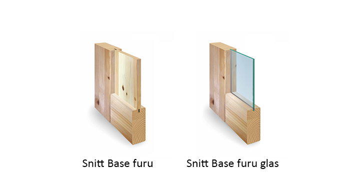 Alle modellane i Base Furu-serien kan leverast som: